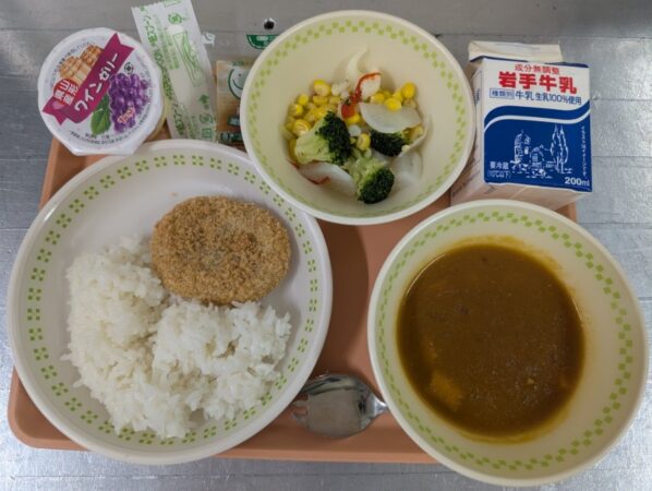 献立は、ごはん、盛岡豆腐カレー、おからコロッケ、ゆでやさいの和えもの、ワインゼリーでした。全ての料理が米内光政と関係があったり、その生涯にゆかりのあるものになるように考えられています。その中から、ここでは「おからコロッケ」ついて紹介します。