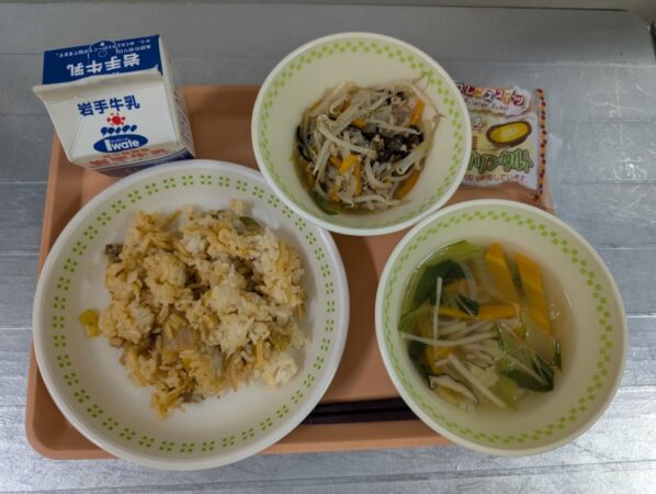 運動会本番に向けてがんばっている子どもたち。みんなが全力を出し切れるように5/21~23の3日間は人気のメニューやデザートを取り入れ、応援の気持ちを込めて作っていただいた給食になっています。今日の献立は、キムチチャーハン、牛乳、もやし炒め、チンゲンサイスープ、プリンタルトでした。給食を食べて、ますます元気いっぱいの子どもたちです。